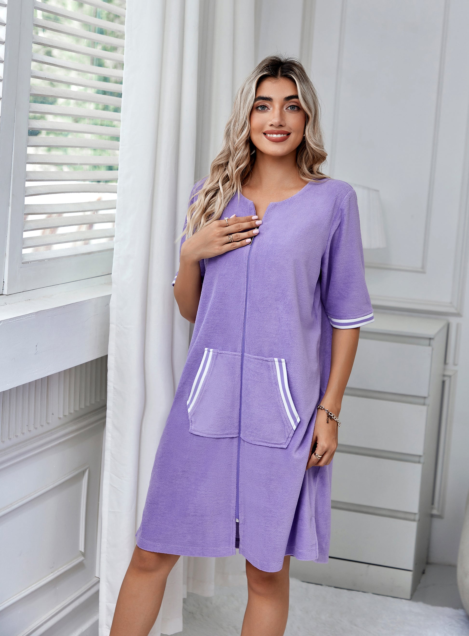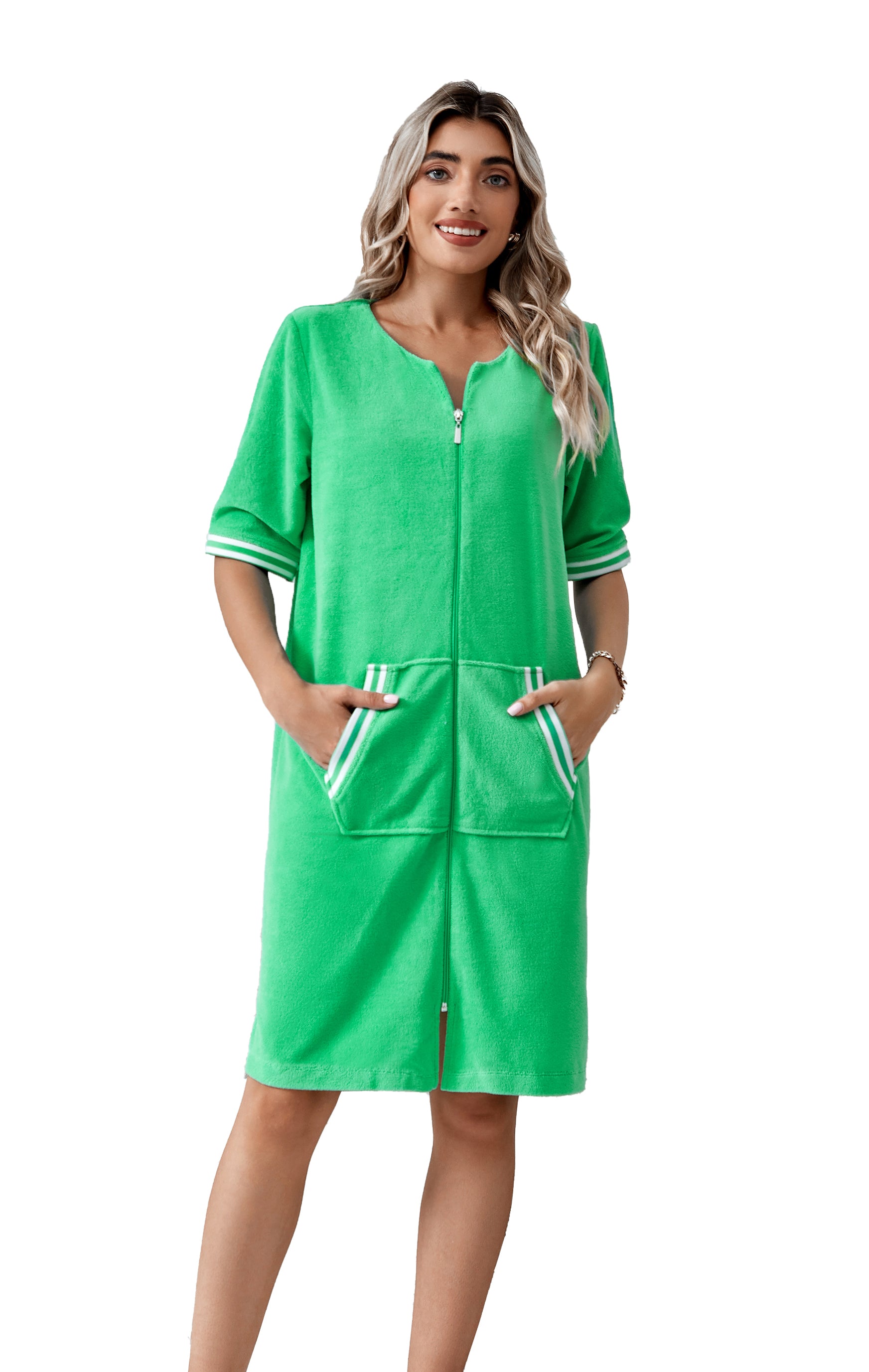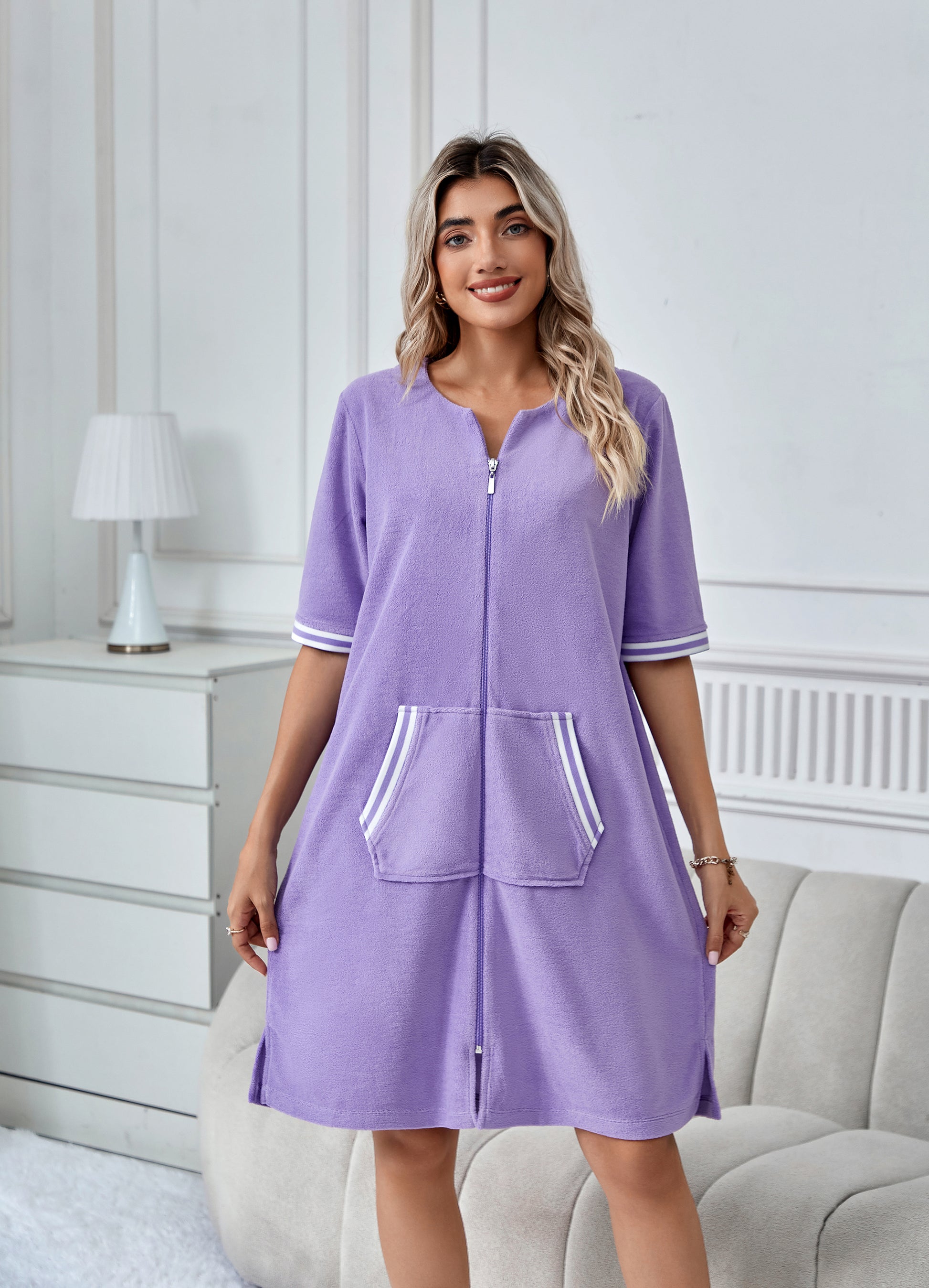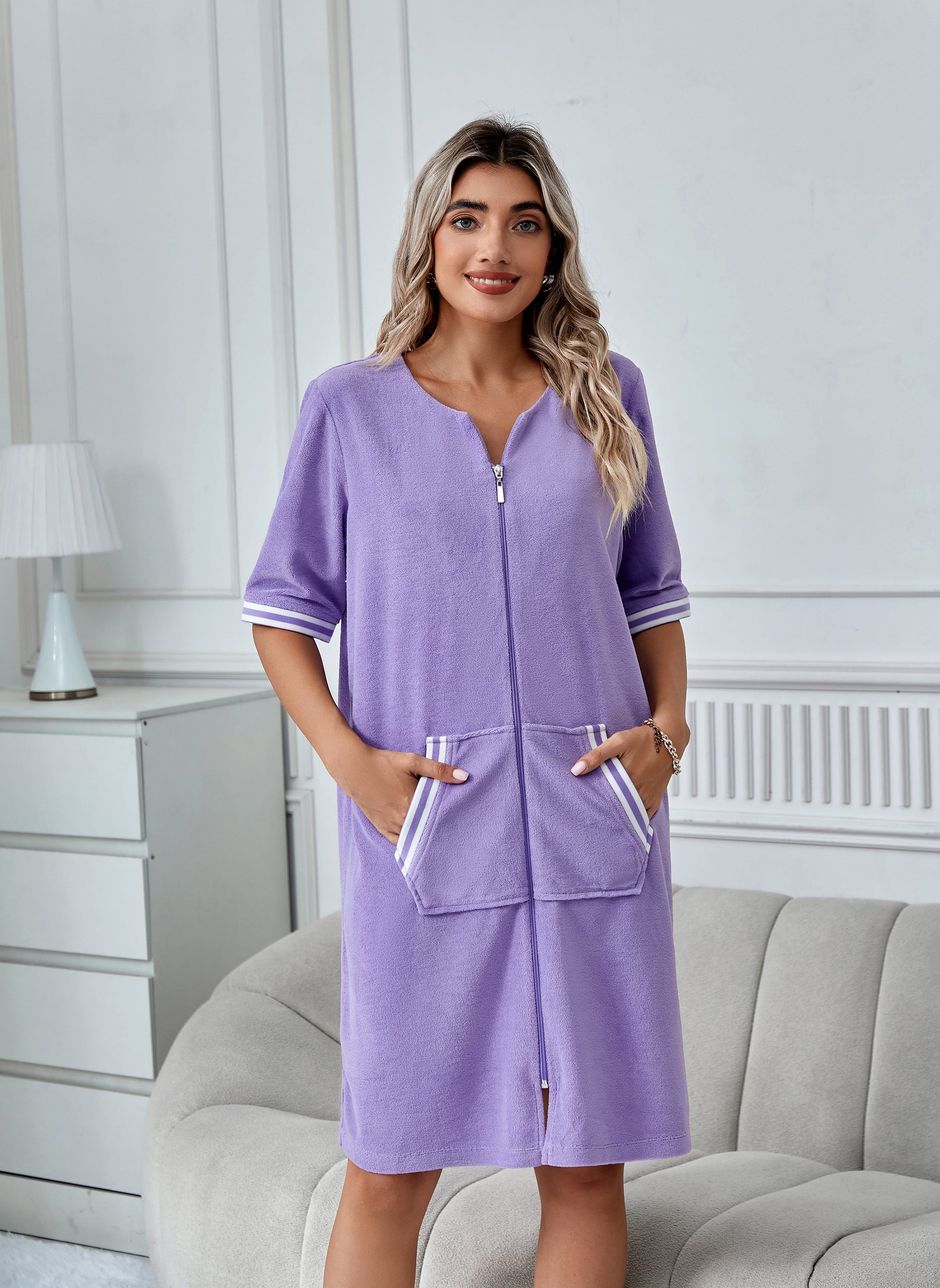 RH Housecoat Women Zipper Front Duster Robe 3/4 Lounger Dress Nightdress RHW4008