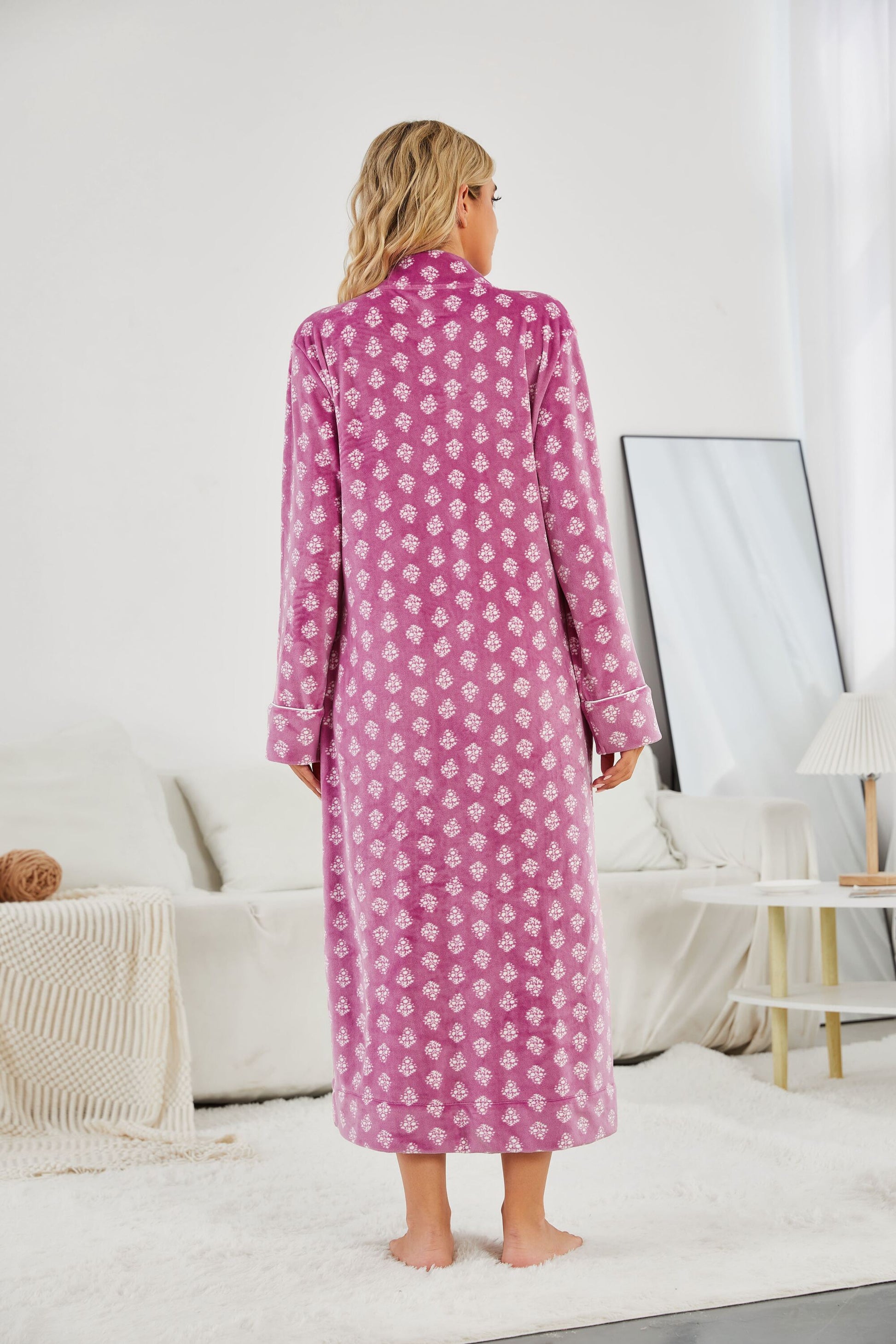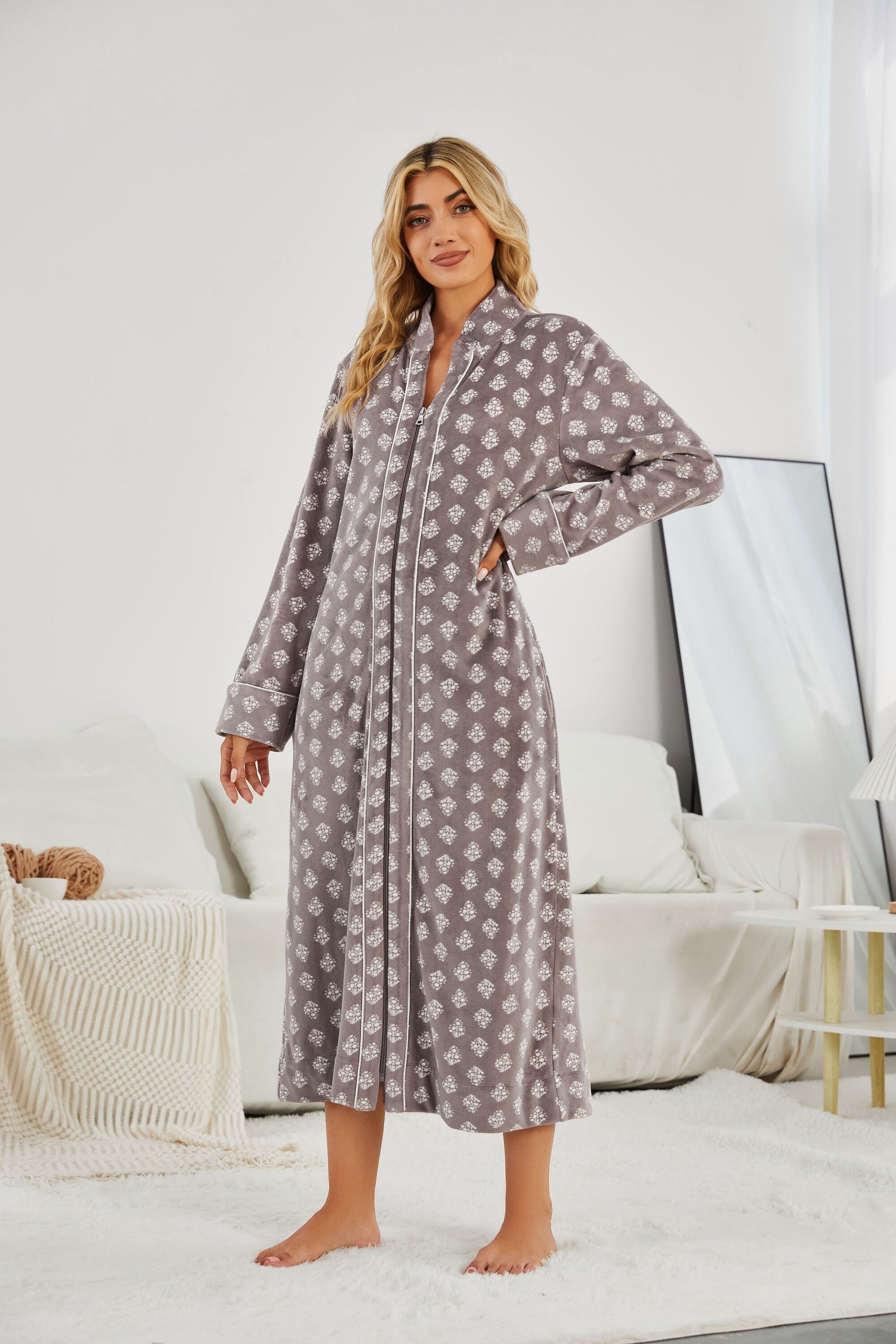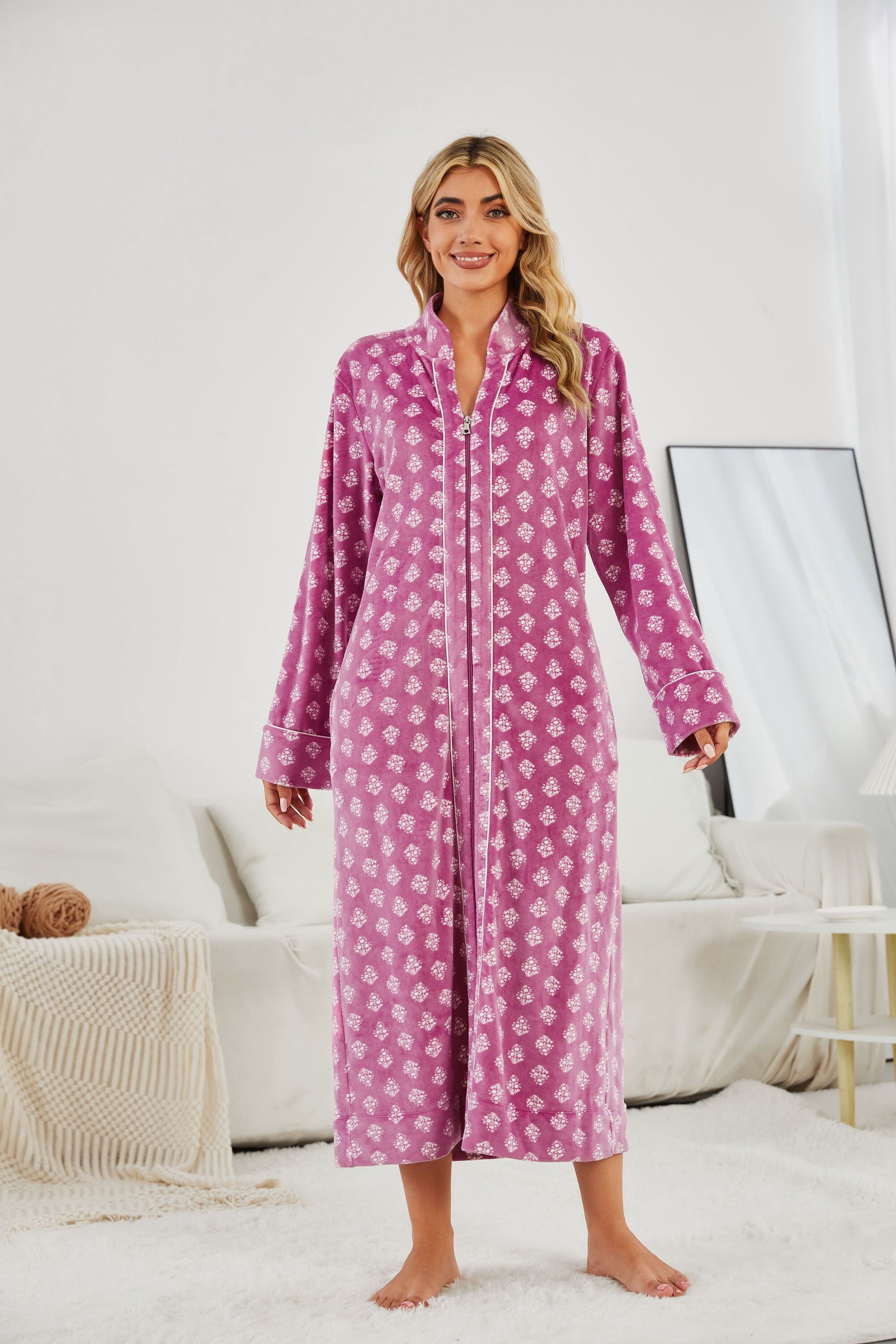 - ♥ SUITABLE DESIGN STYLE & COMFORT - The Housedress carries full-length, plus size, long sleeve warm printed knit design, Full Zipper front, fits free to all ladies. Highlights your nobility and elegance. The result is an extremely comfortable & durable housedress that is easy to care for & will keep you warm and cozy for years to come. It is soft, comfy, Skin-friendly & Lightweight For You To Wear. Suitable for Loungewear & Sleepwear Attire.