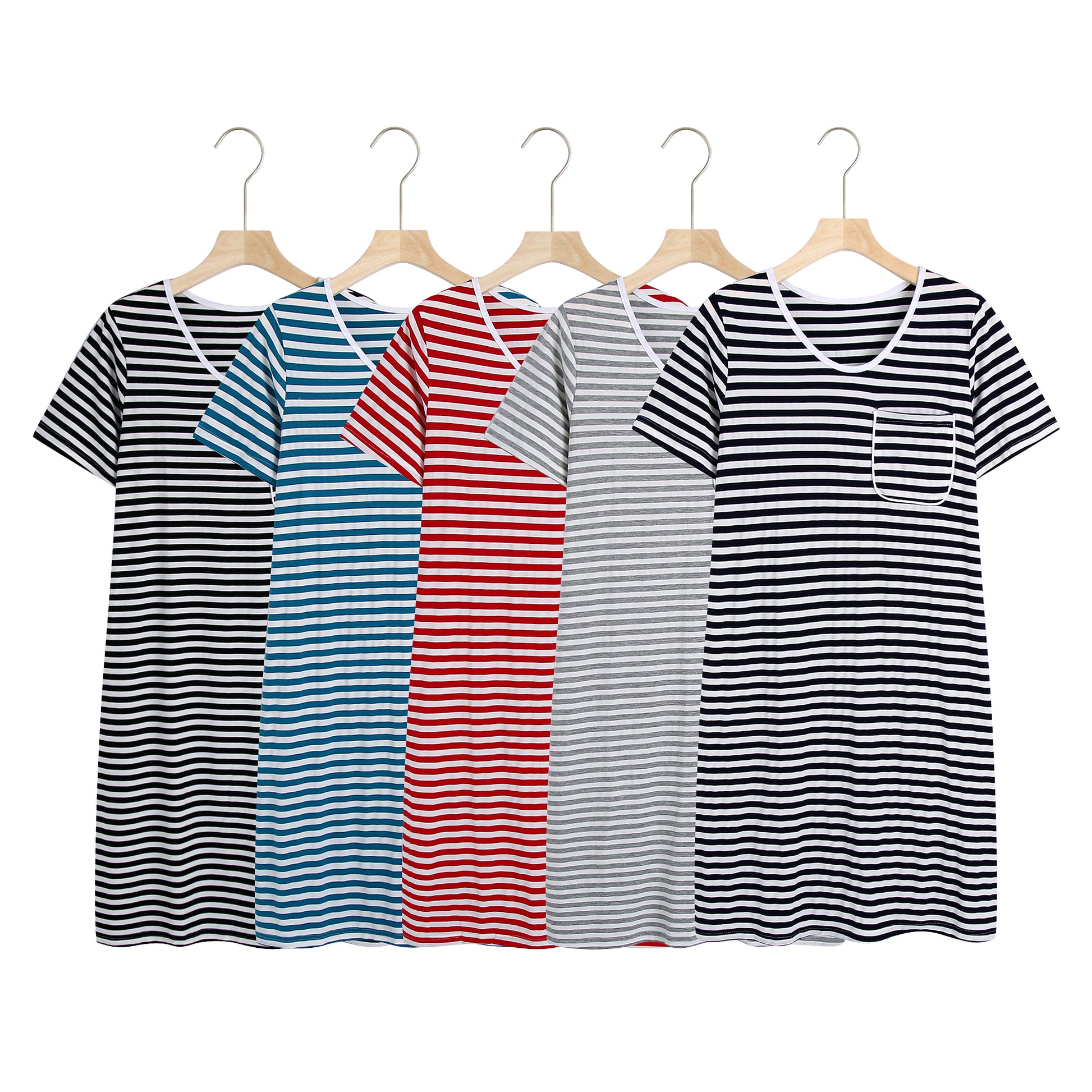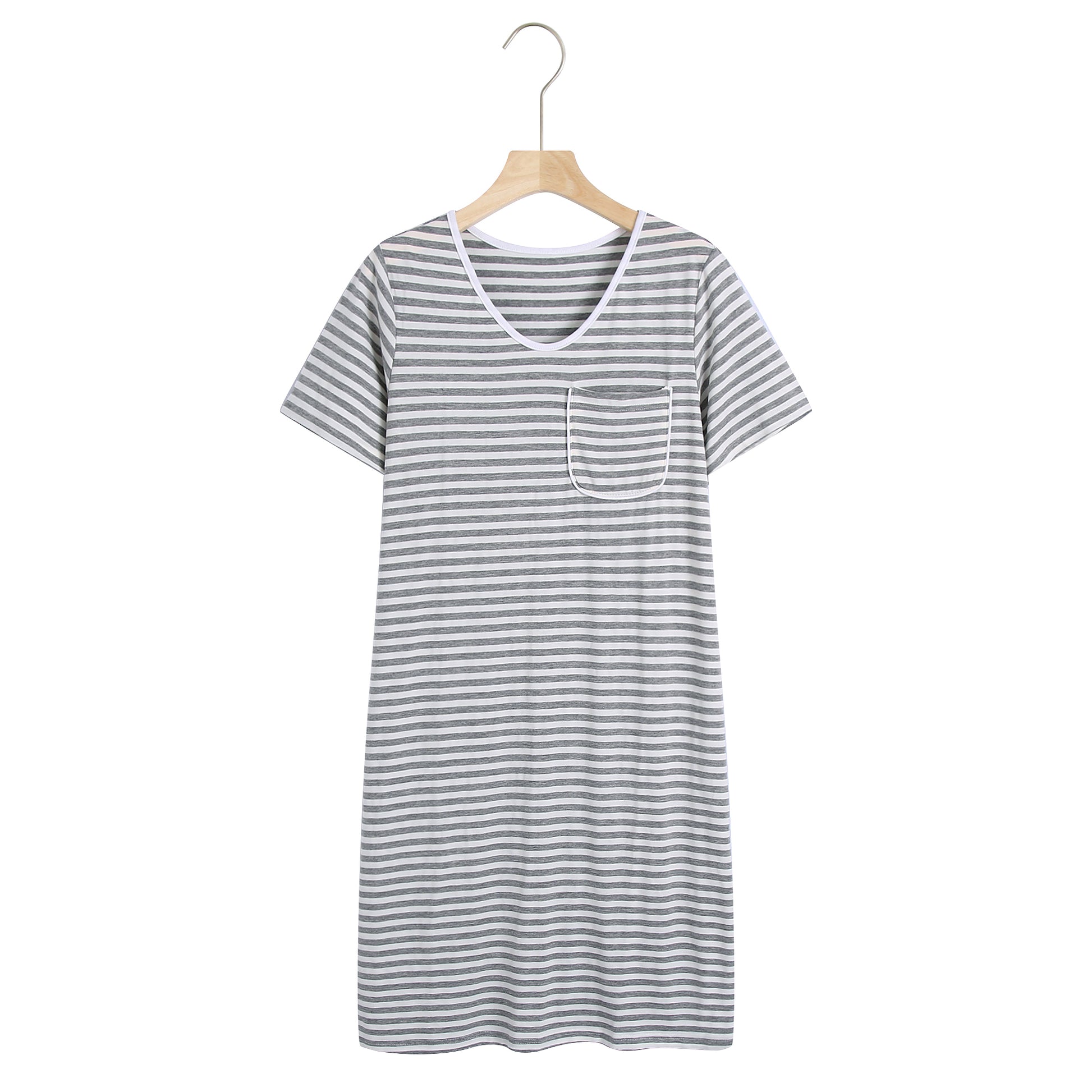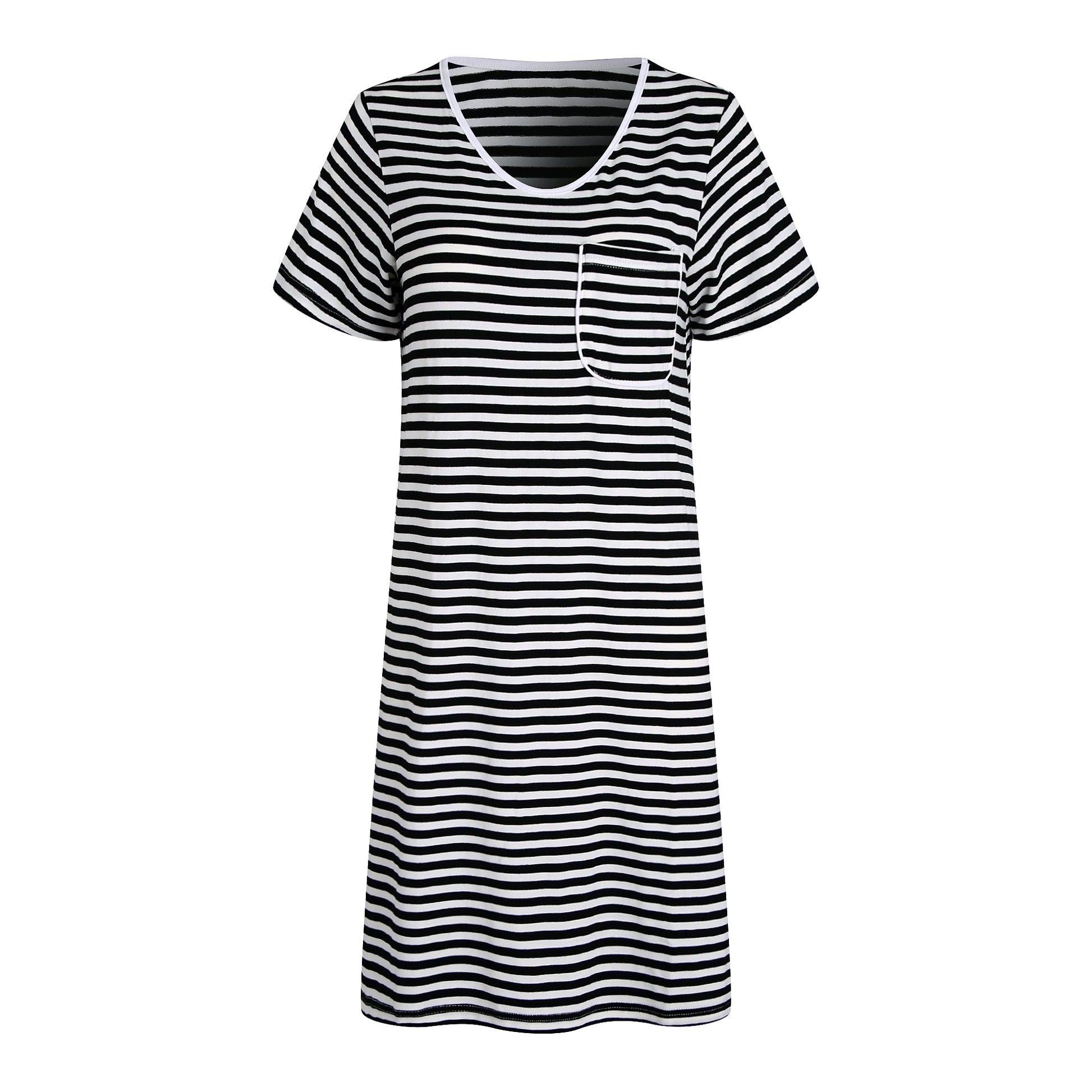 RH Women Nightgown Striped Tee Short Sleep Nightshirt Pajama Dress S-2XL RHW4041