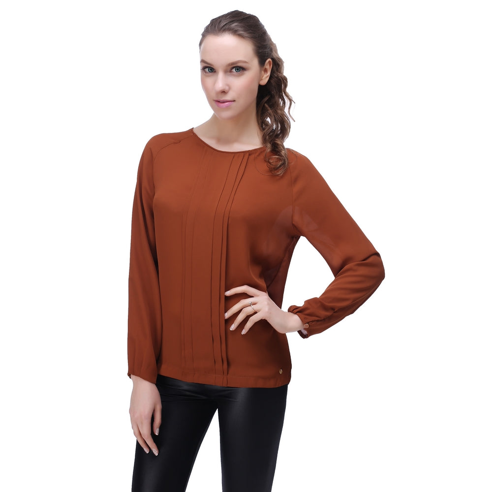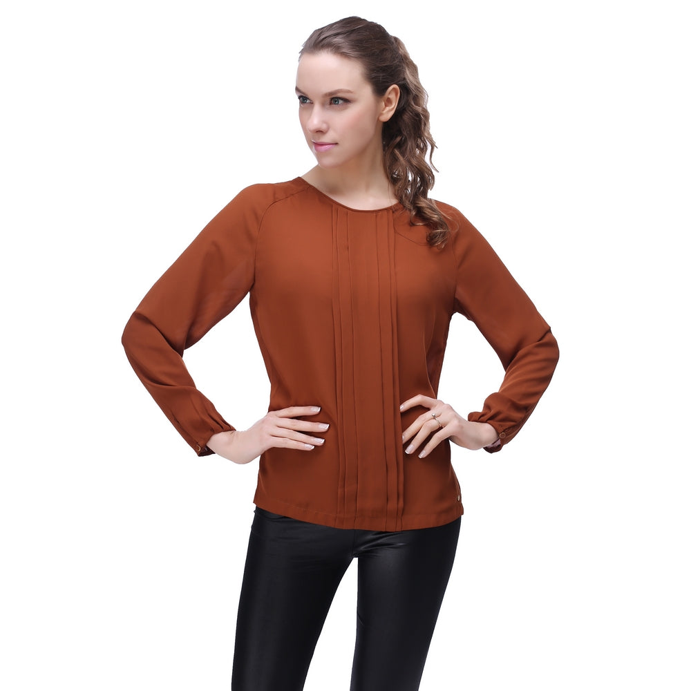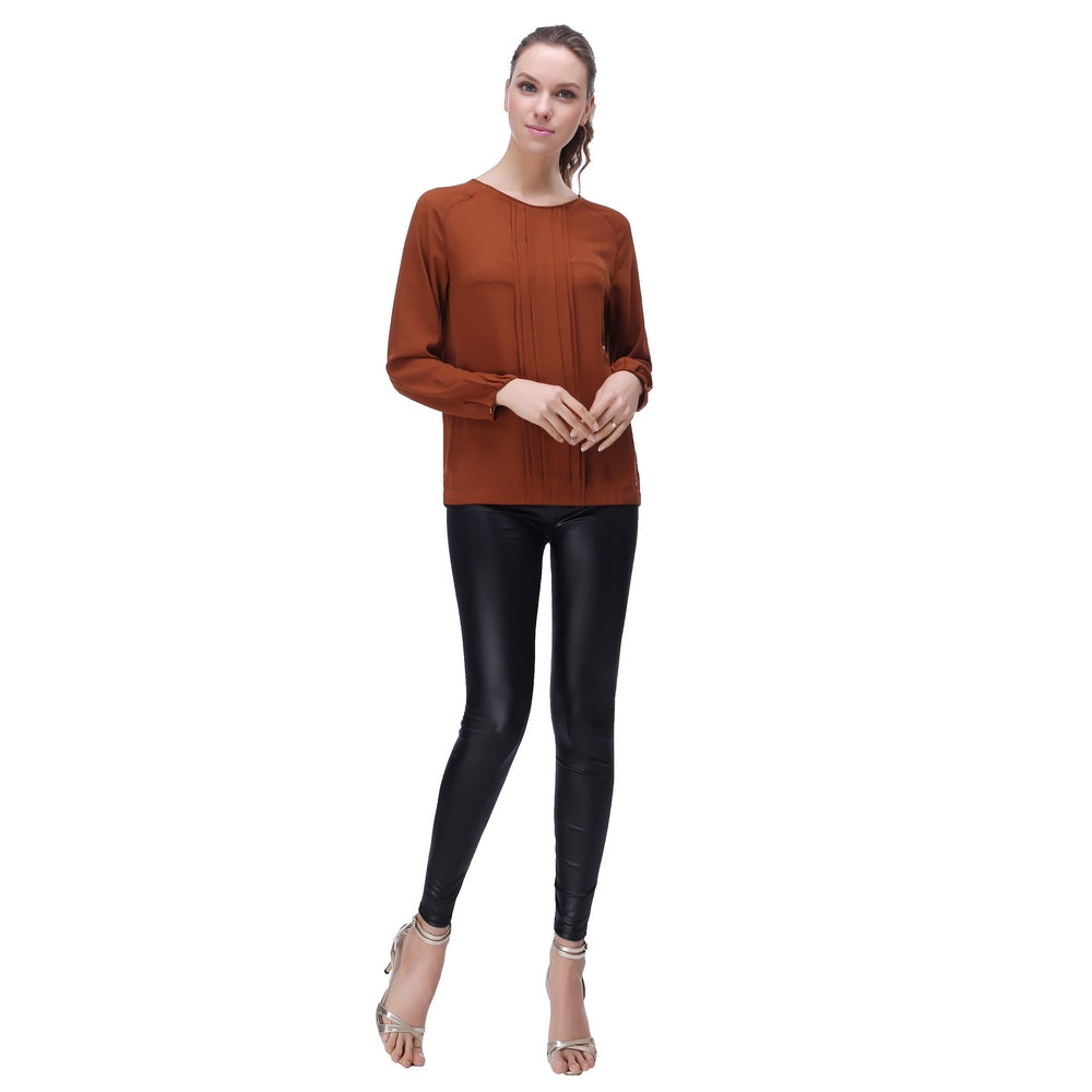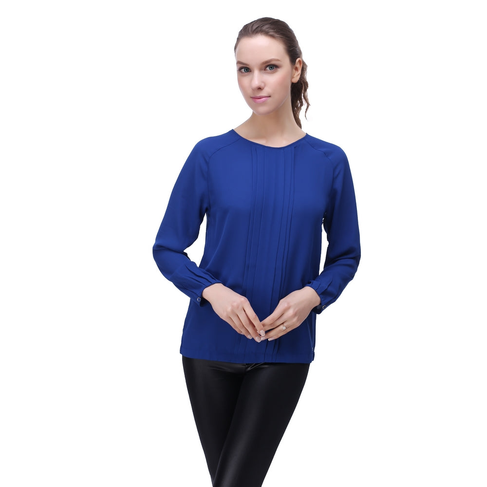 RH Women's Casual Chiffon Long Sleeve Dress Blouse Top Scoop Work Shirt RH2035
