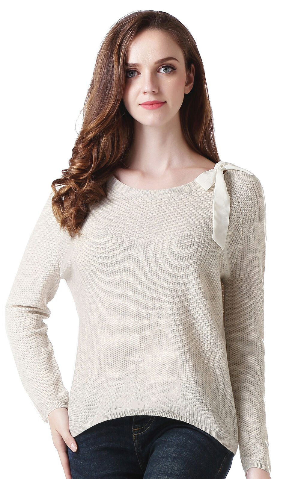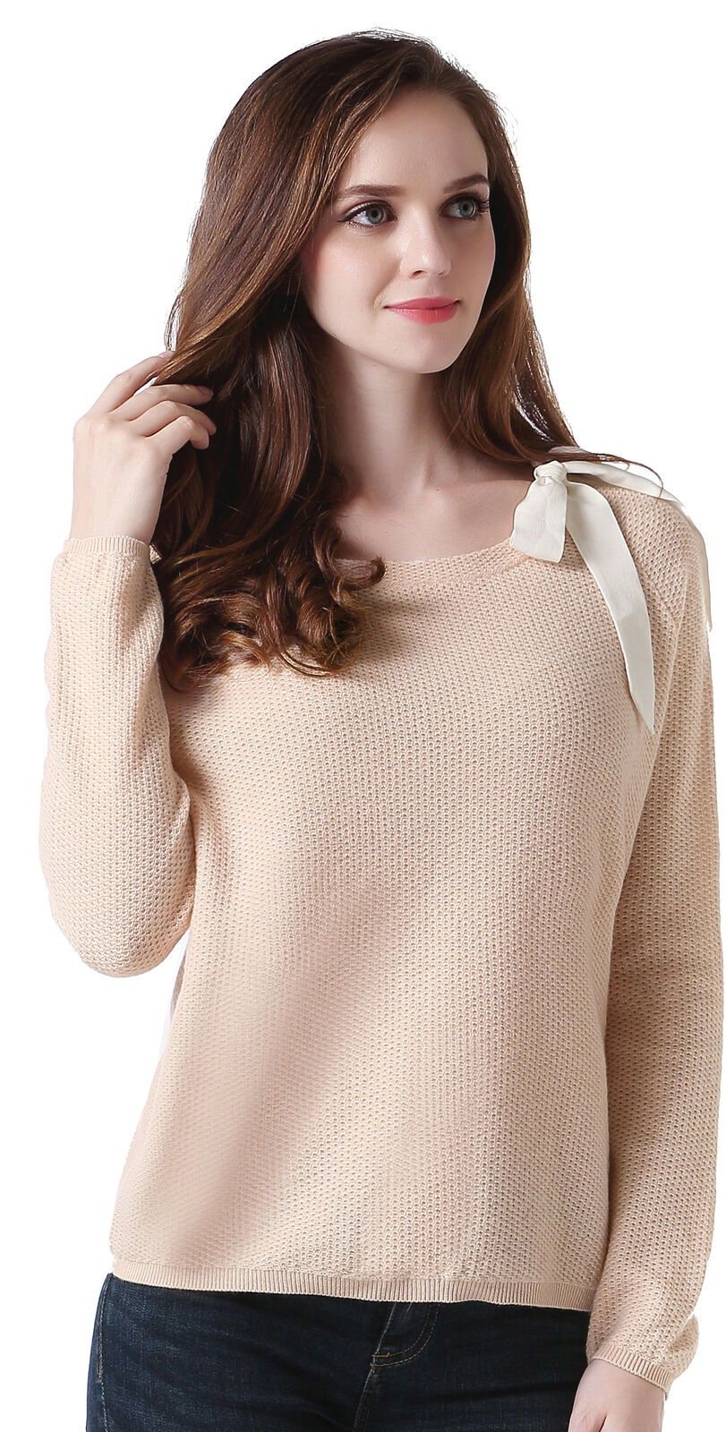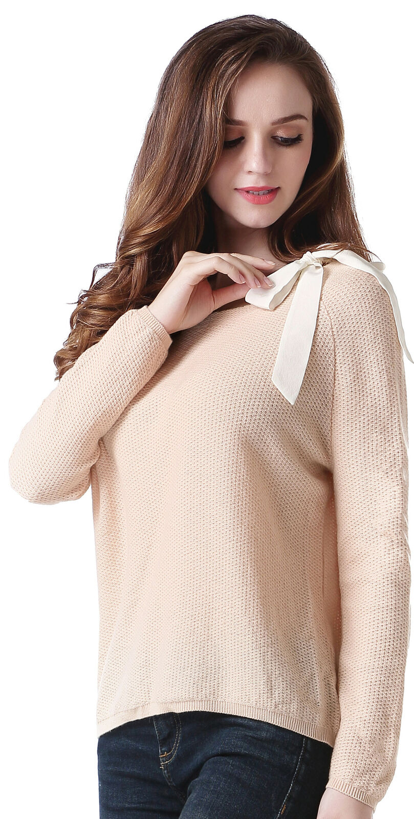RH Women's Classic Long Sleeve w/ Ribbon Pullover Wool Sweater Top Blouse RH2053