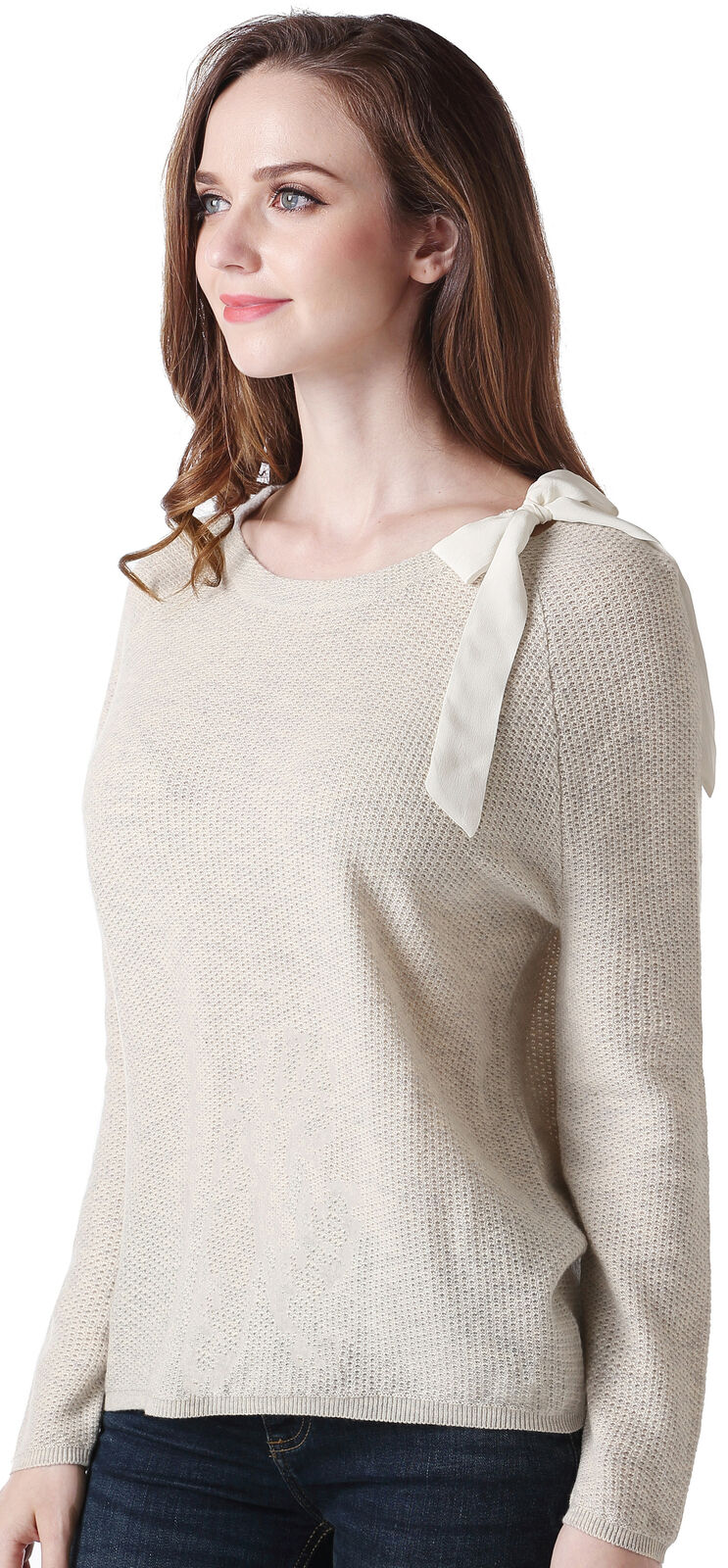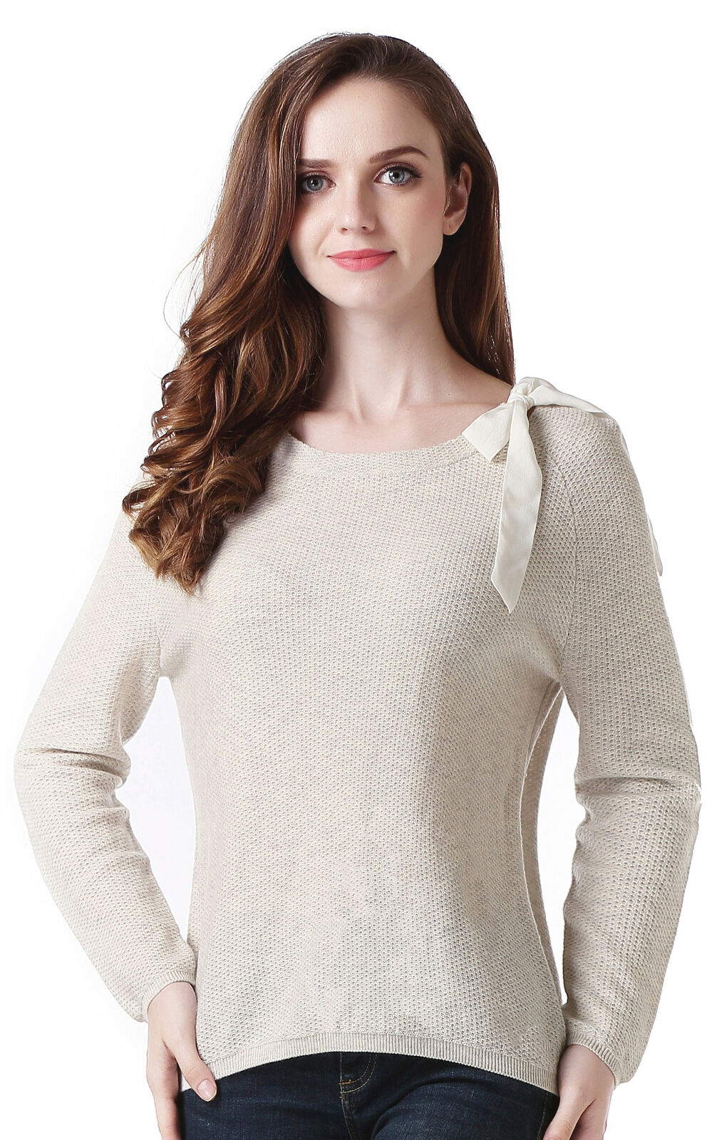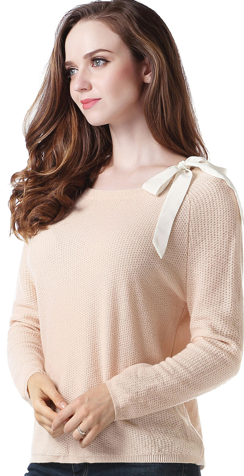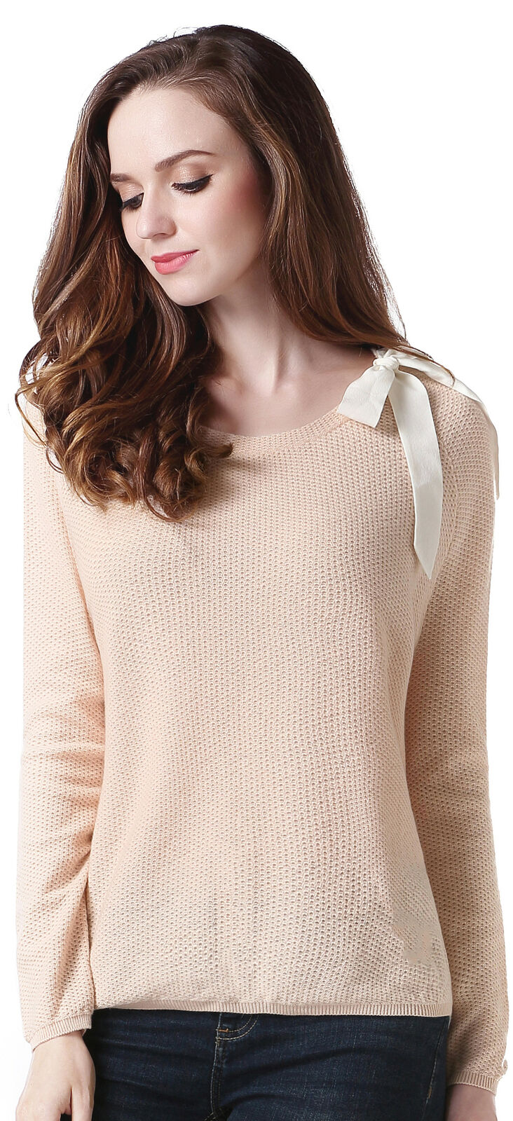 RH Women's Classic Long Sleeve w/ Ribbon Pullover Wool Sweater Top Blouse RH2053