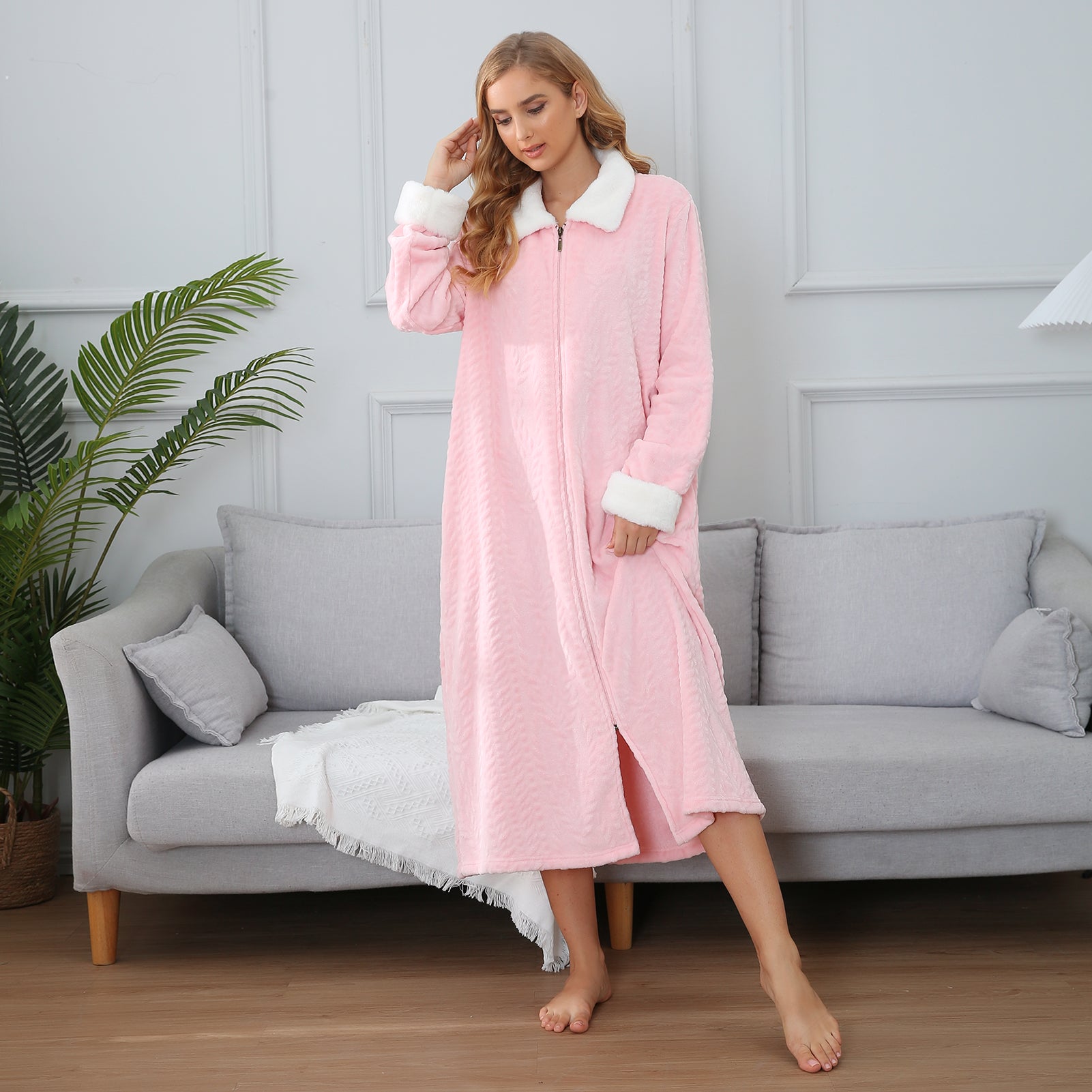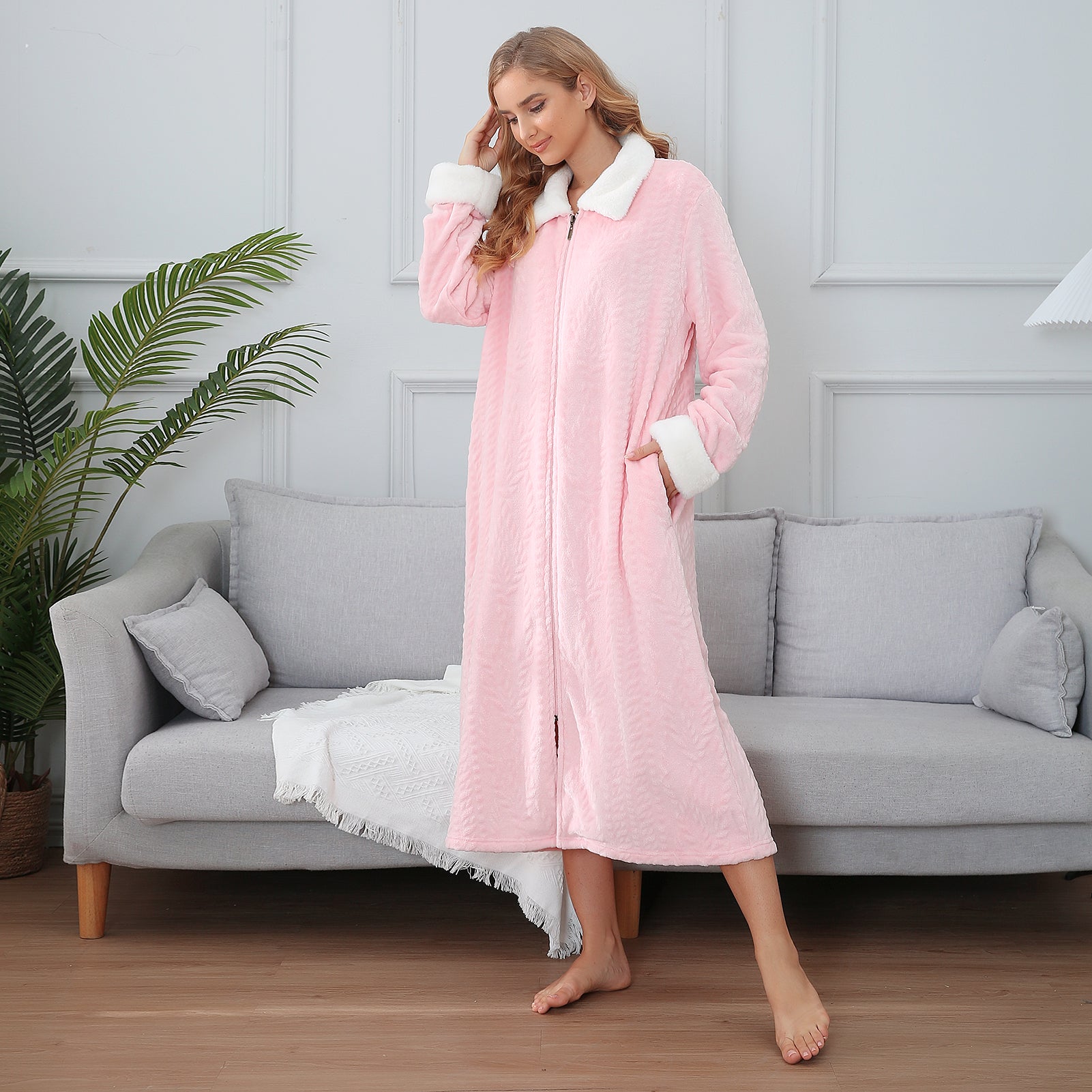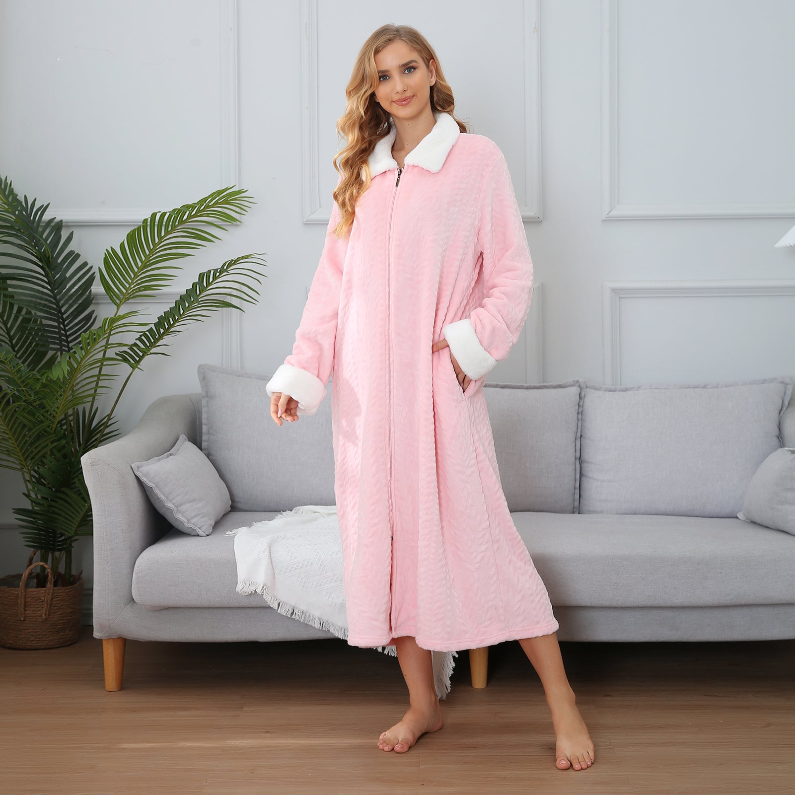 - ♥ SUITABLE DESIGN STYLE & COMFORT - The casual Housedress features a Front zip design, oversized collared plush long sleeve, and full-length bathrobe with side-to-side pockets design for feminine flair. So different unique and comfortable bathrobe! Never worry about your robe falling open because this soft plush robe features a full zipper to keep your robe closed securely. These bathrobe are loose to allow airflow to keep your body cool and dry throughout the night.