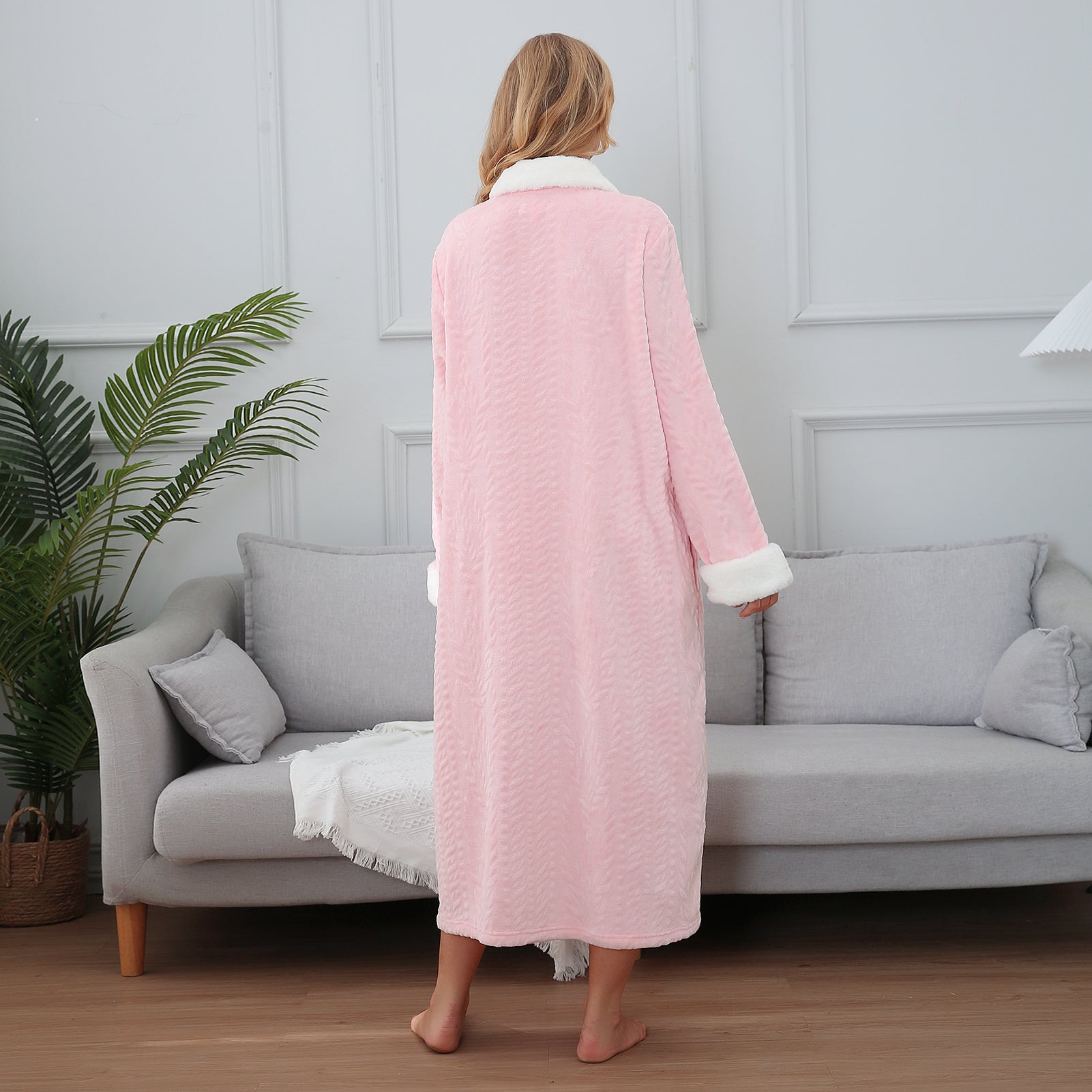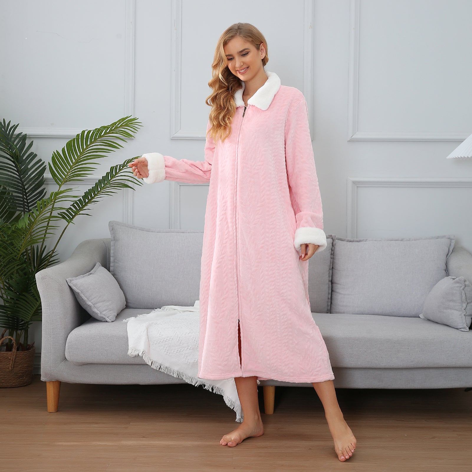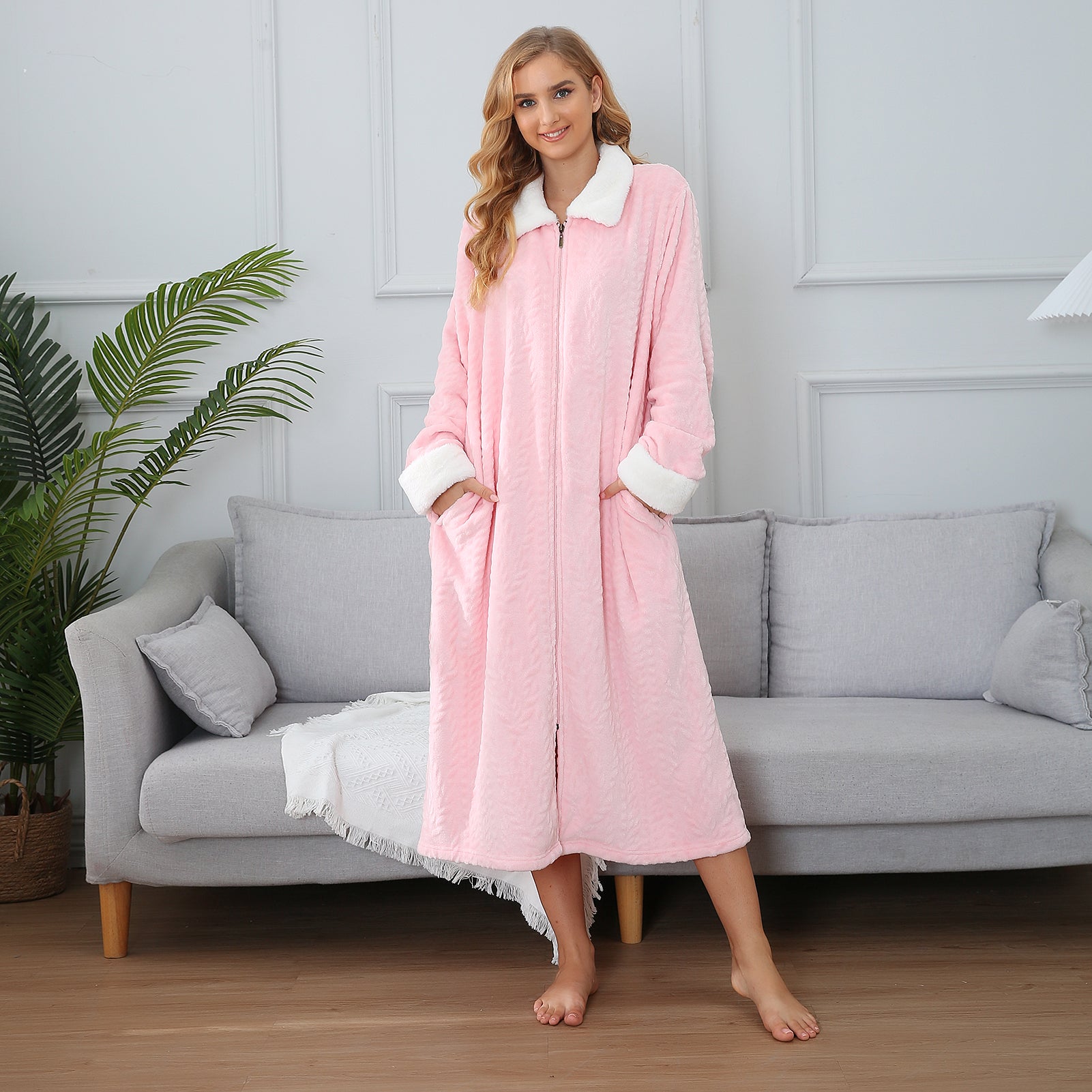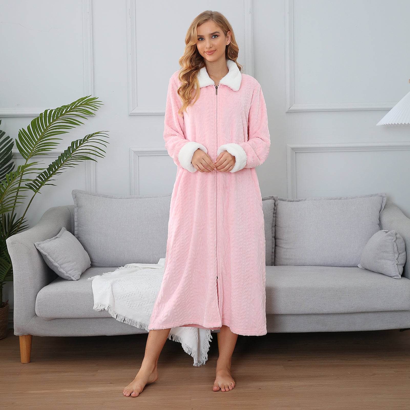 - ♥ SUITABLE DESIGN STYLE & COMFORT - The casual Housedress features a Front zip design, oversized collared plush long sleeve, and full-length bathrobe with side-to-side pockets design for feminine flair. So different unique and comfortable bathrobe! Never worry about your robe falling open because this soft plush robe features a full zipper to keep your robe closed securely. These bathrobe are loose to allow airflow to keep your body cool and dry throughout the night.