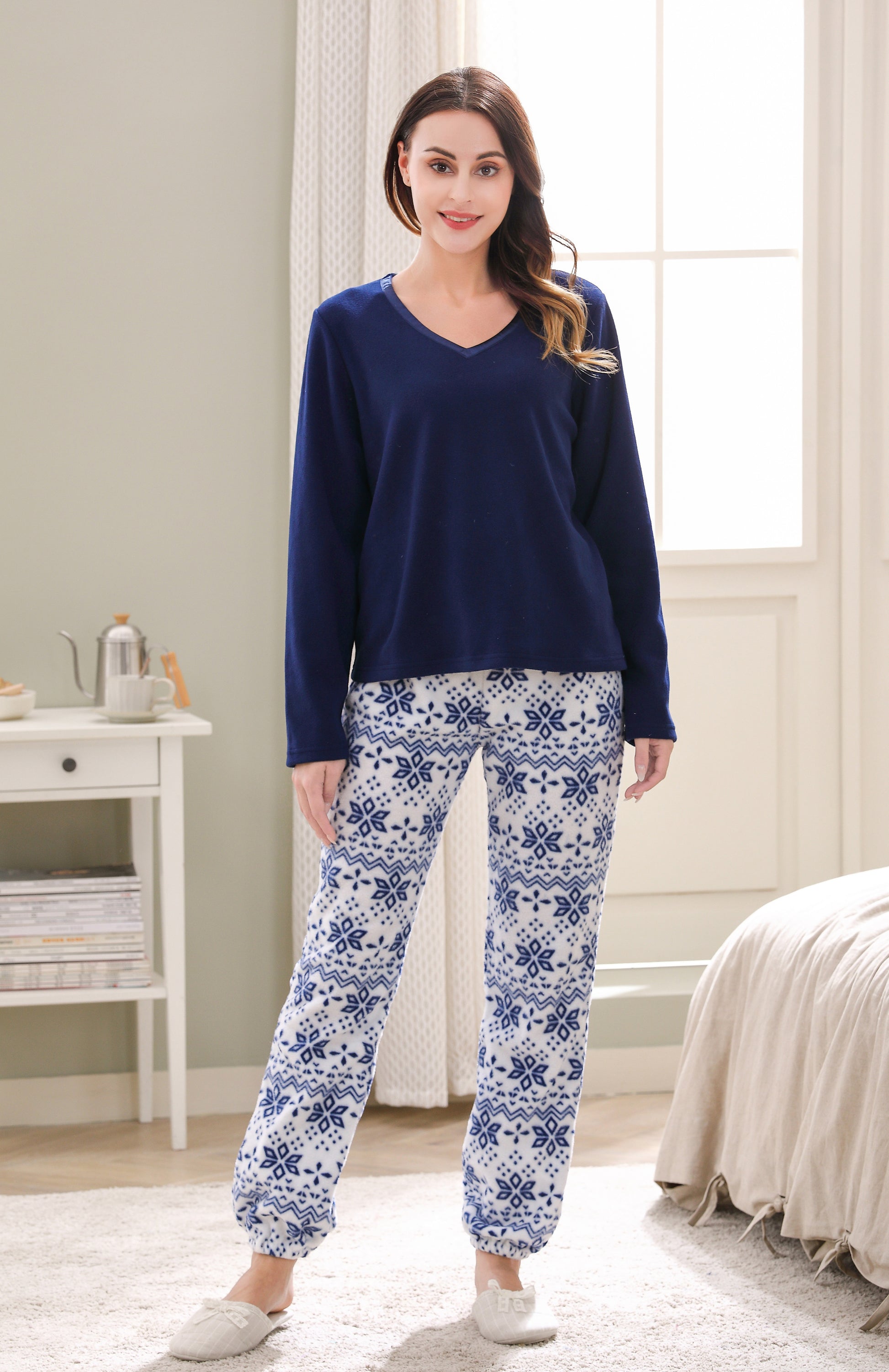 - Premium 100% microfibre fleece pajama set keeps you warm