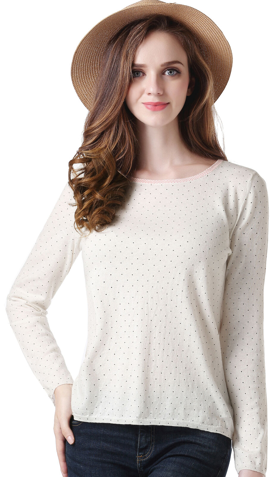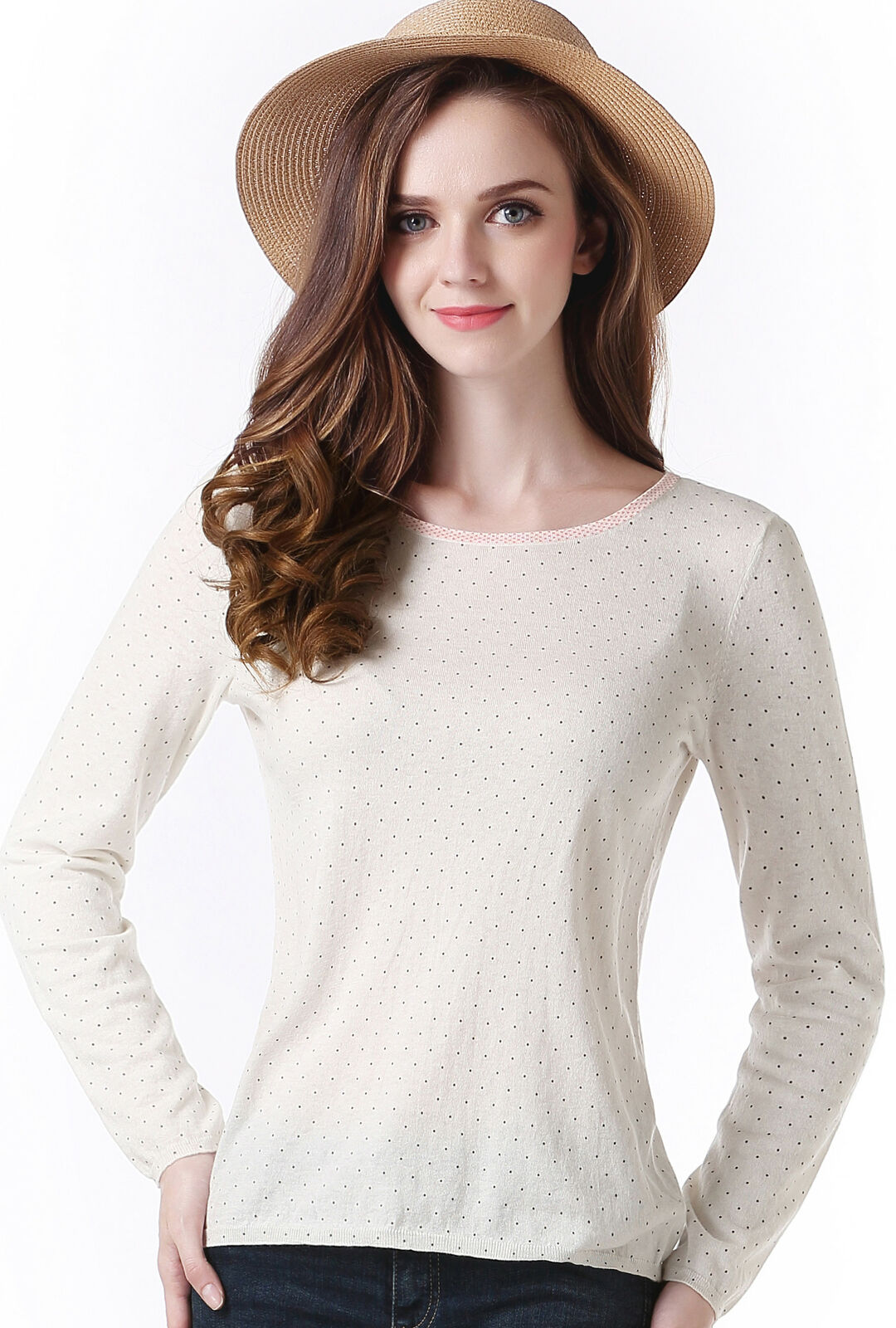 RH Women's Warm Polka Cotton Pullover Sweater Long Sleeve Top Blouse RH2048