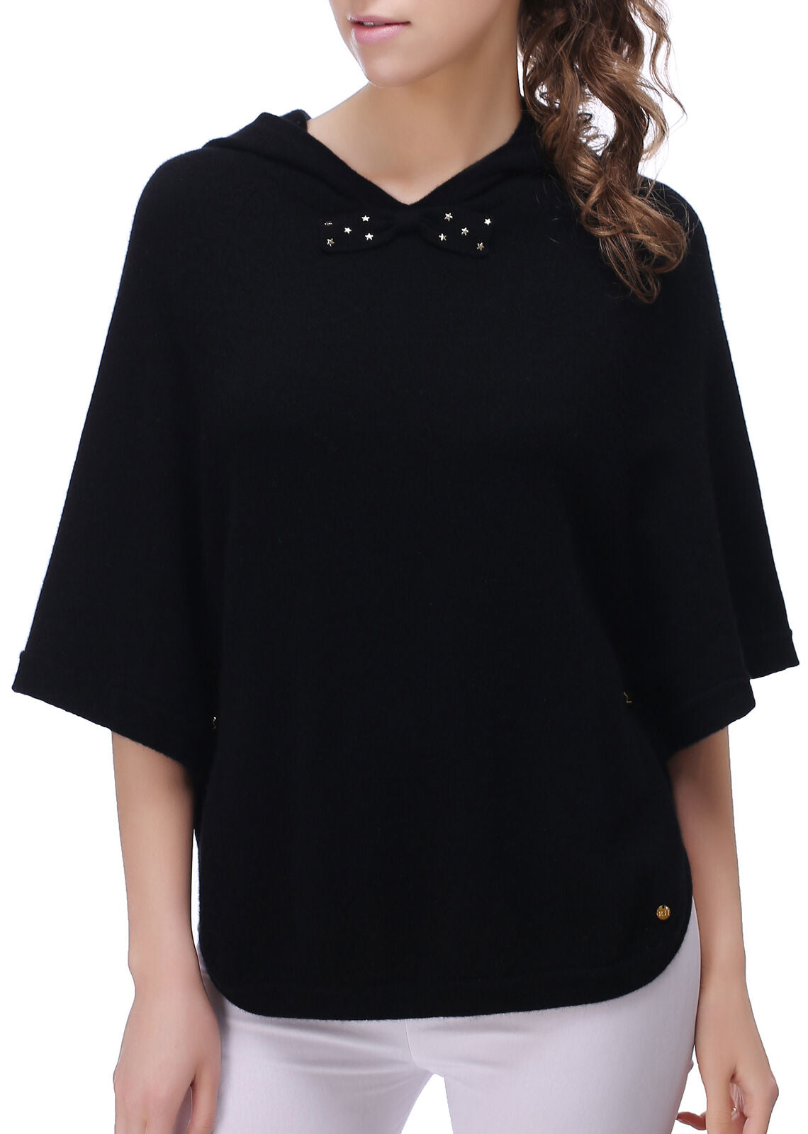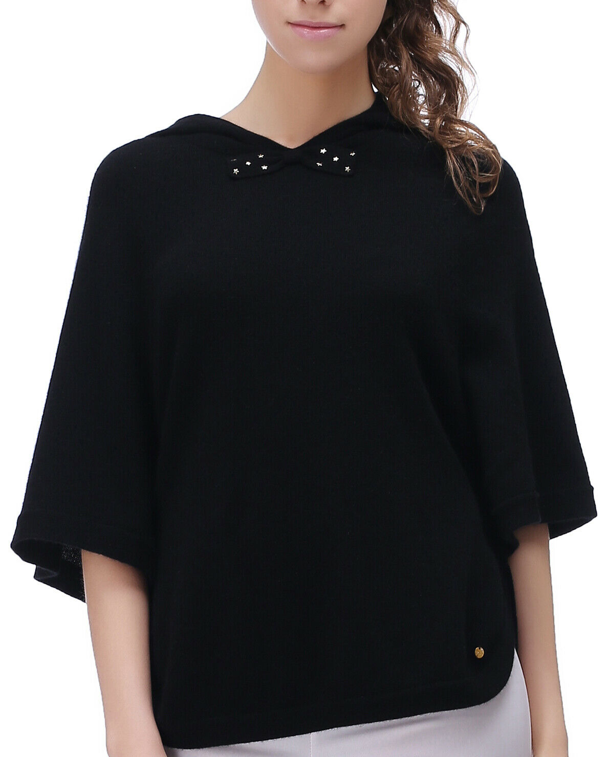 RH Women's Women's Wool Hooded Cloak Sweater Bow Top Tee Pullover Outwear RH2057