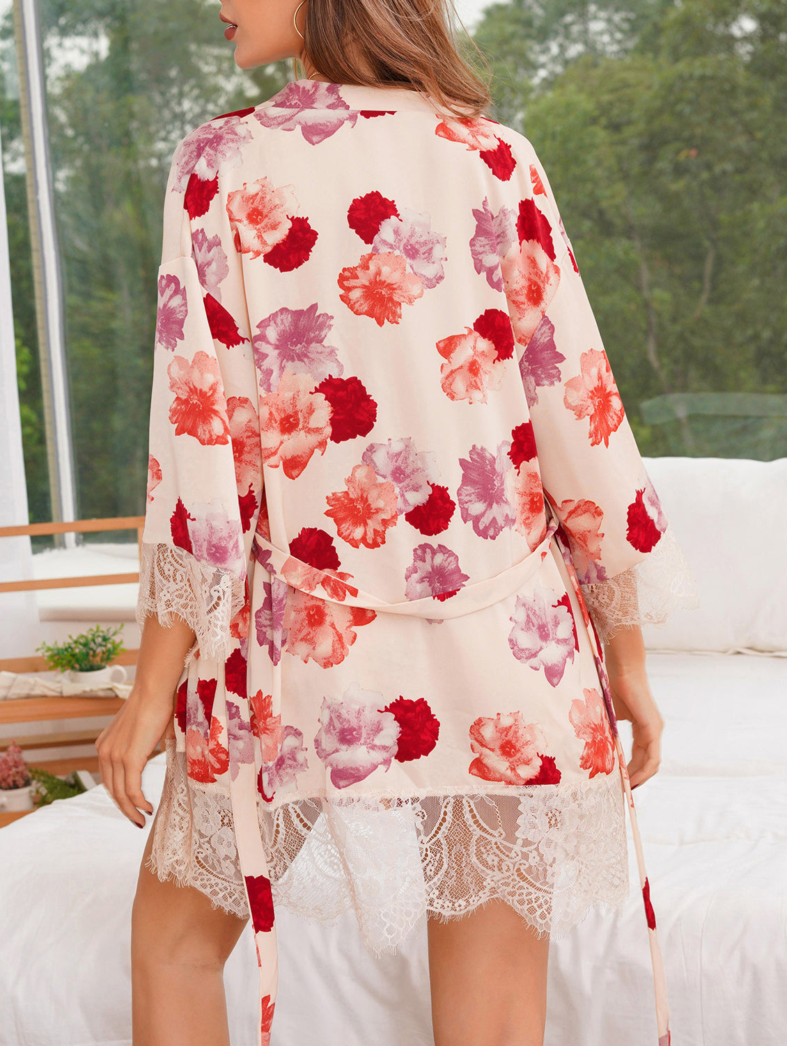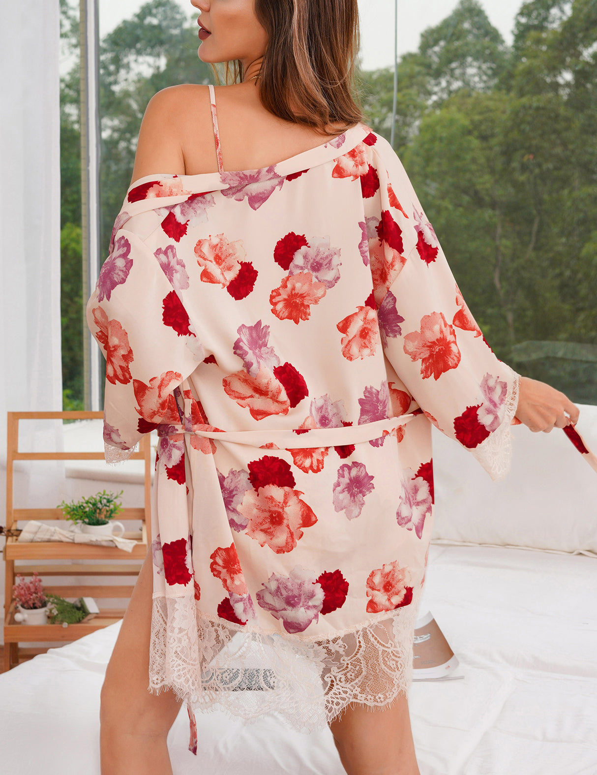 Richie House Women Floral Cami Sexy Robe Set 3P PJ Nightwear Sexy Lace Lingerie RHW2913