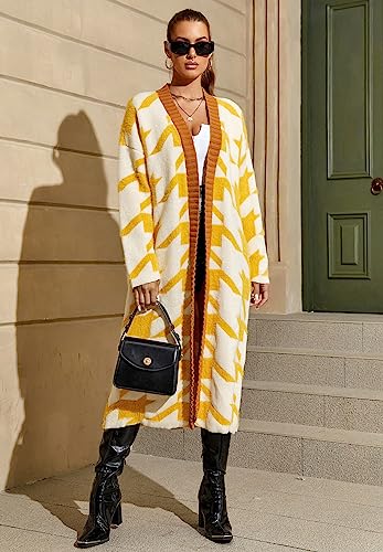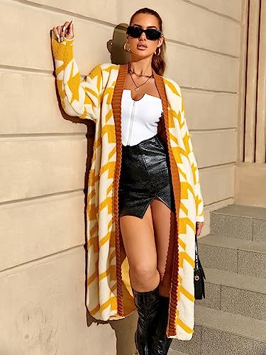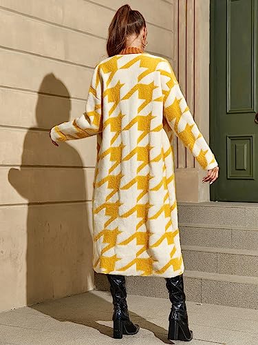 - ♥ EASY FITTING - These cardigan are available from S to XXL, The season of this product is spring/winter. Our Mellow Yellow Houndstooth Longline Cardigan is so yummy and cozy! The fabric is so so good and chunky but super soft on your skin. Feels like butter baby! Great for on-to go casual looks with your favorite blouse or tank, and jeans or leggings. Just grab and go! For formal events dress it up with statement necklaces with a professional blouseand other fun jewelry with heels.