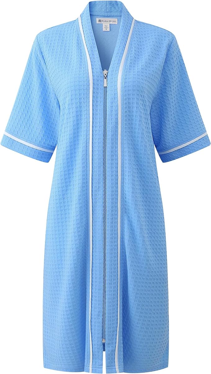 Richie House Women's Button Front Duster Zip up Bathrobes Short Nightgown with Pockets, S-3XL RHW4093
