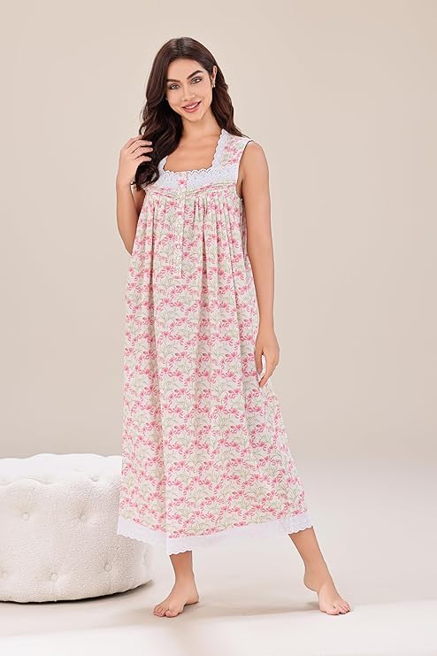 Richie House Women's Cotton Sleeveless Floral Sleepwear Dress Nightwear RHW4090
