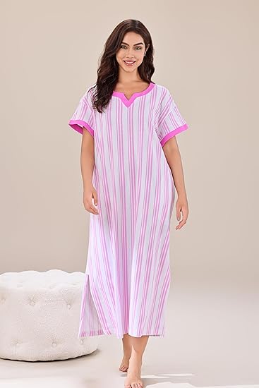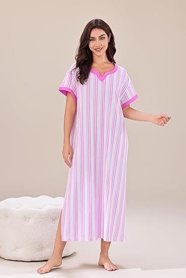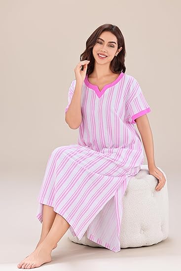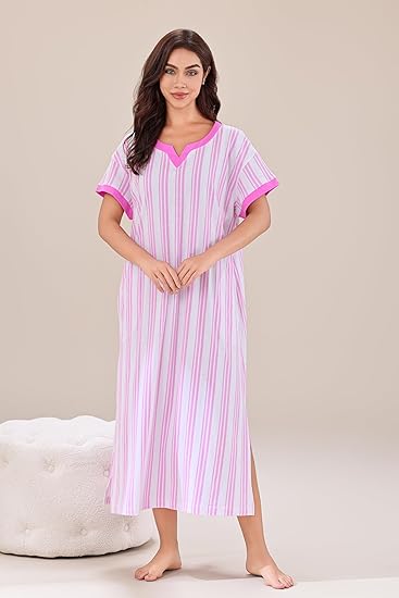 ♥ SUITABLE DESIGN STYLE & COMFORT - The housedress carries full-length, plus size, side pocket straight stripe design for added practicality. , fits free to all ladies. It is soft, comfy, Skin-friendly & Lightweight For You To Wear. Suitable for Loungewear & Sleepwear Attire. You'll love the pure soft fabric that's extra breathable and washes like a dream.