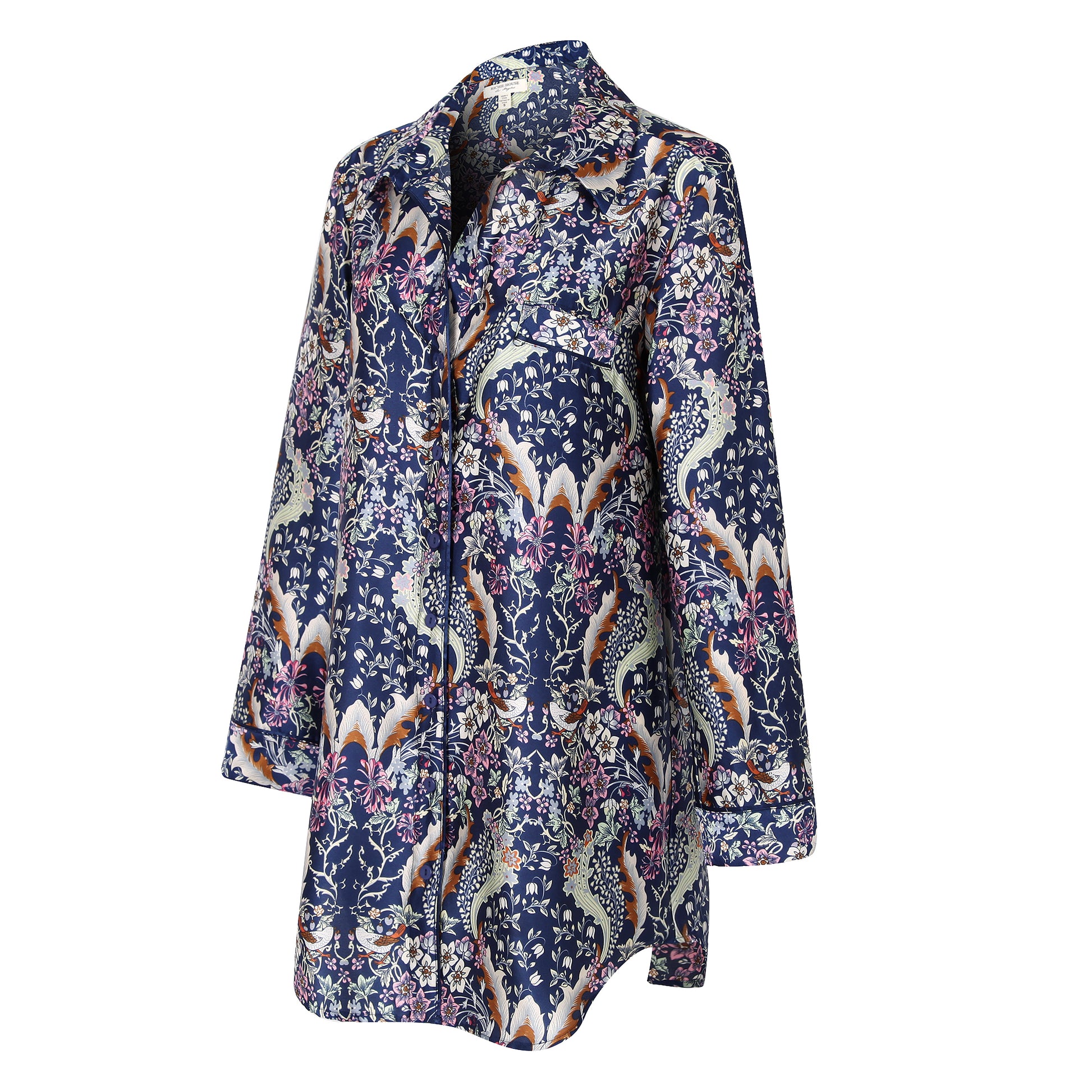 Richie House Women's Printed Satin Long Sleeve Dress Nightshirt Button Sleepwea PJ RHW2812